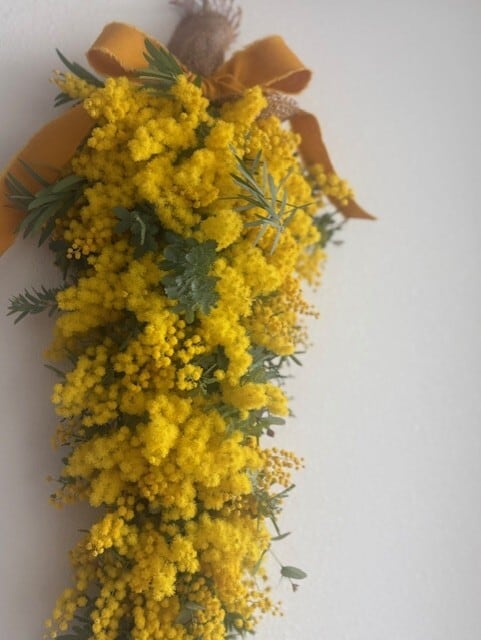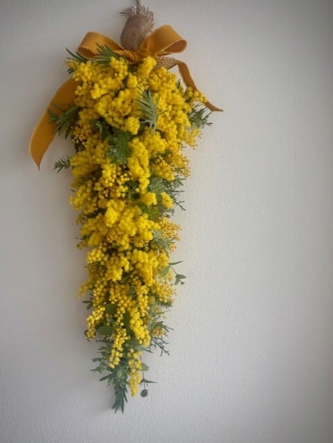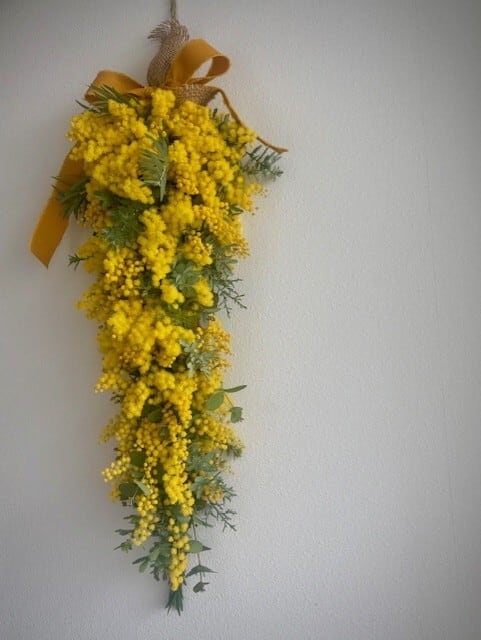 ミモザの優しい香りと温かみ溢れるイエローカラーが、幸せな気持ちを運んできます。日々の生活に癒しを与えてくれる、ミモザガーランド、是非癒されてください。