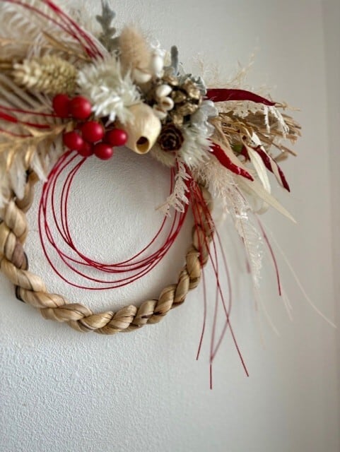 人気のホテイアオイのしめ縄を使用した、シンプルでありながら華やかなお正月飾りです!