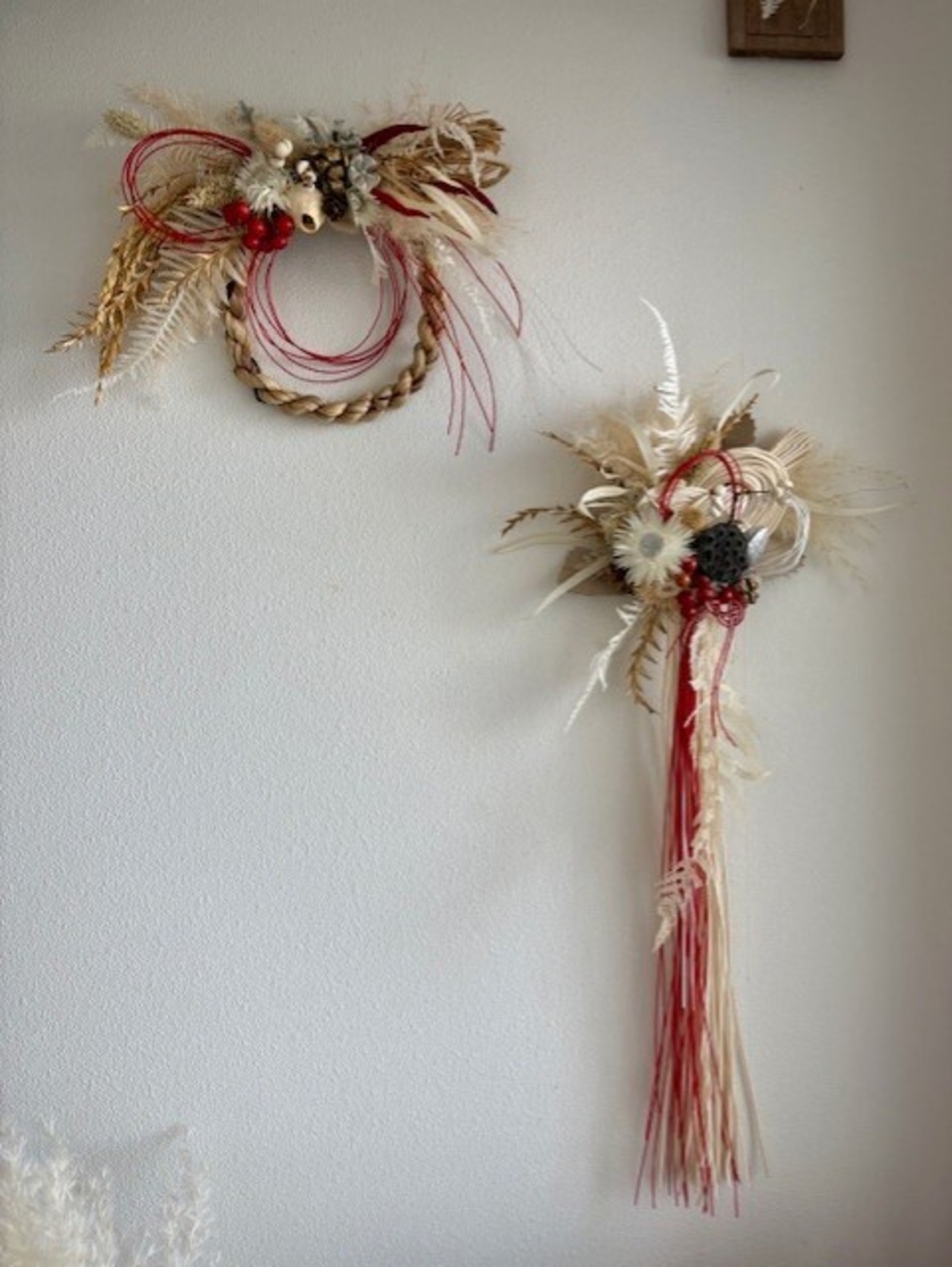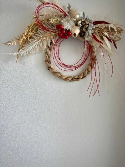 ※自然の素材を使用しているため、風合いや形に多少の違いがございます。しめ縄の材料が破損や落下する可能性がございますので、お取り扱いには十分ご注意ください。また、直射日光や高温多湿を避け、風通しの良い場所に保管してください。