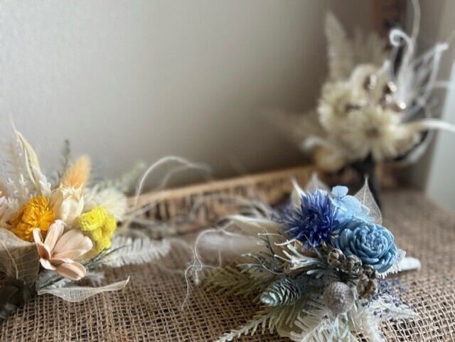 イエローカラーを基調に、さまざまなニュアンスをご用意し、一つ一つ丁寧に心を込めて作成しました。大切なセレモニーや特別な日を彩るアイテムとして、ぜひご活用ください。