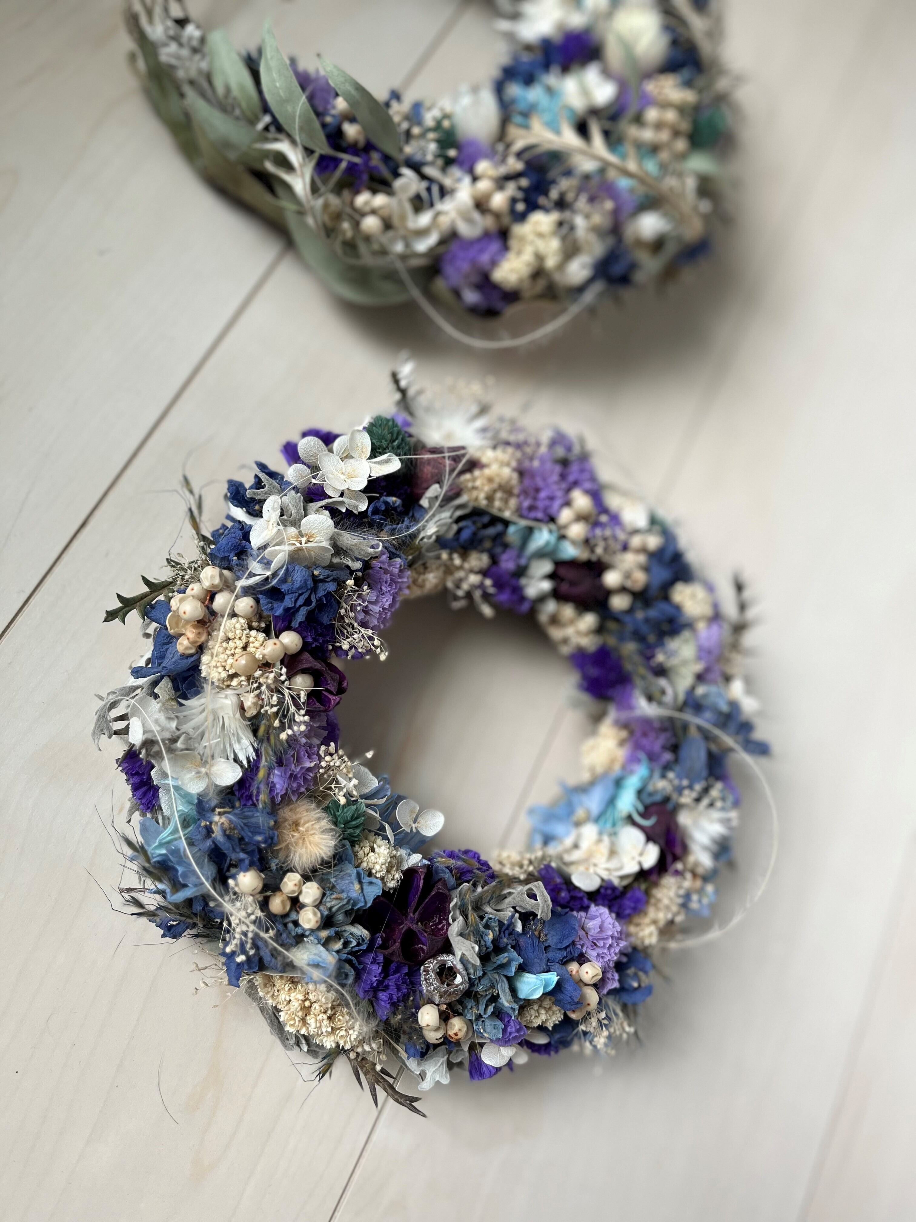 涼しげなブルーカラー、手作り感溢れる、温かみのあるこのミニリースが、あなたの日々を彩り豊かにし、笑顔をもたらすことを願って、お届けいたします。