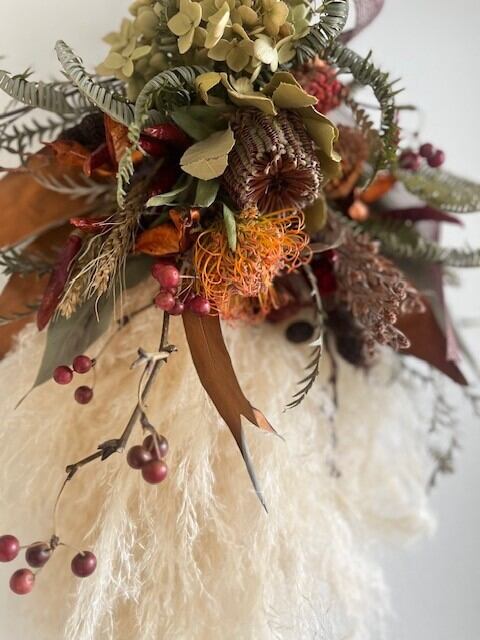 ※自然のものですので、多少の風合いの違いがございます。リースの花材が破損や落下する可能性がございますので、お取り扱いには十分ご注意ください。また天然素材を使用しているため、多少色や形が異なる場合があります。また、直射日光や高温多湿を避け、風通しの良い場所に保管してください。